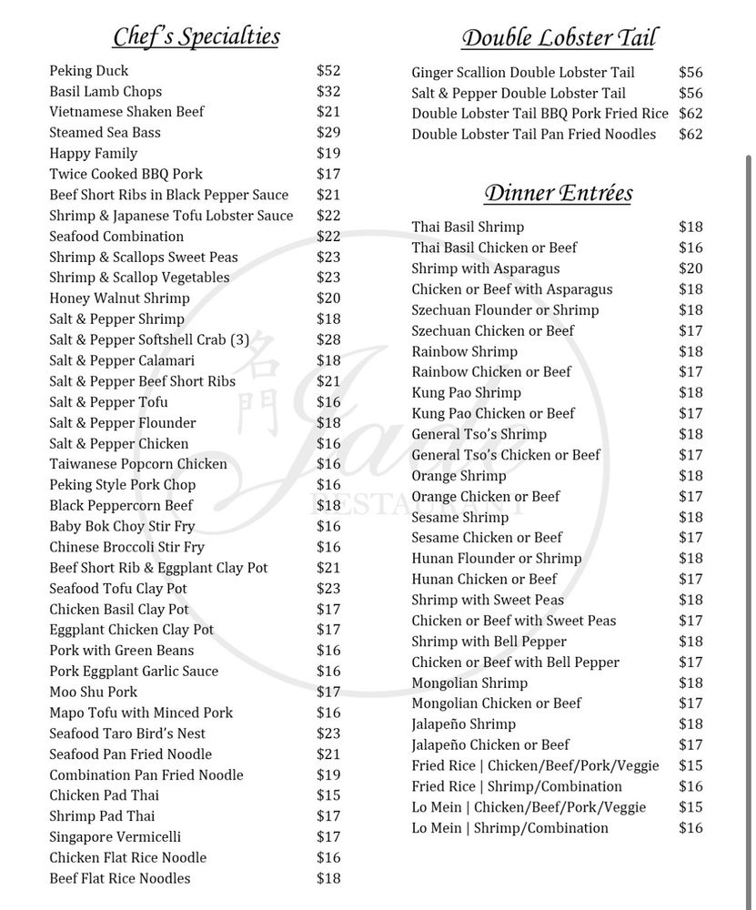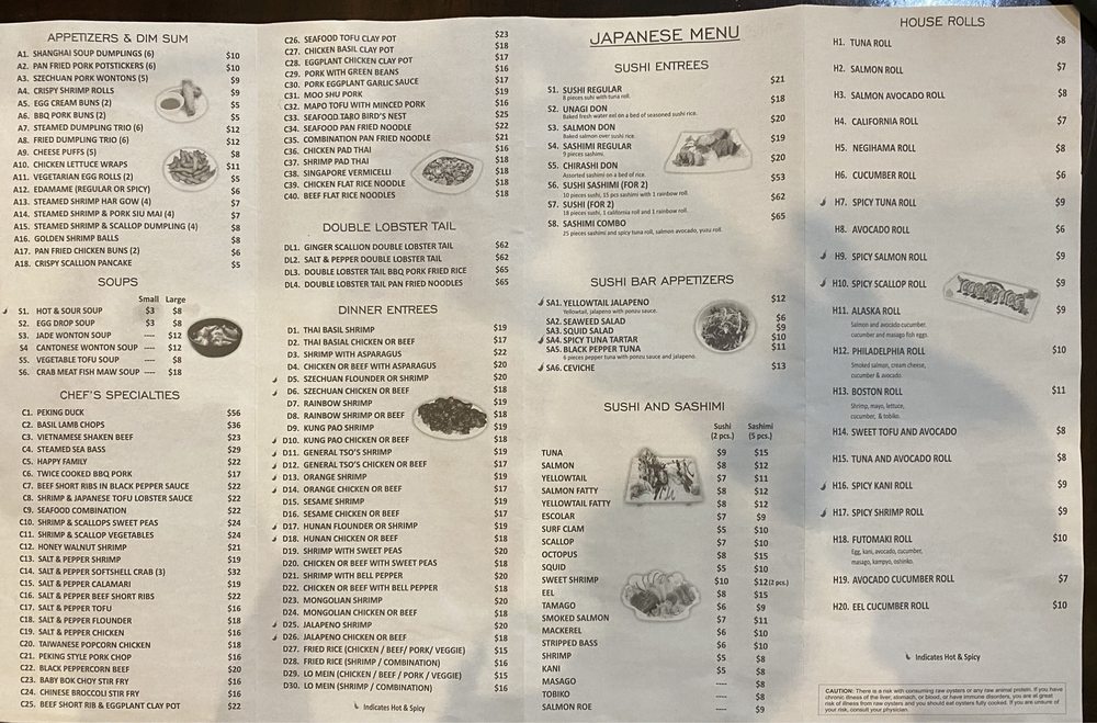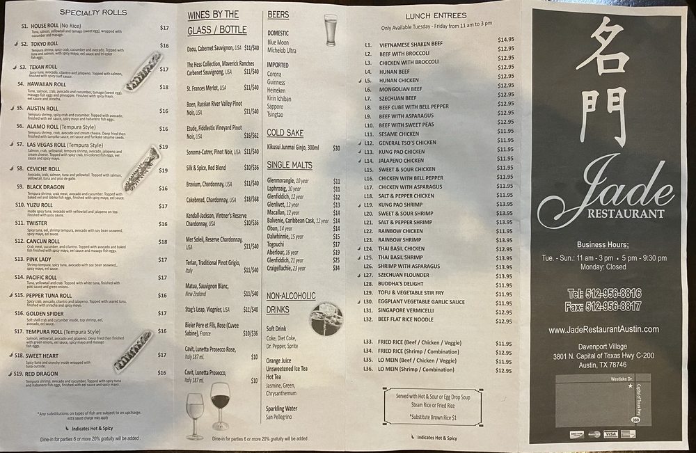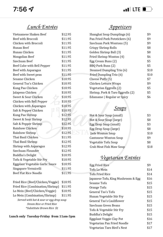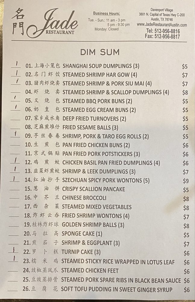 Introducing Jade Restaurant located in Austin, Texas, a casual yet trendy spot offering a variety of Chinese cuisine. This restaurant provides an array of appetizers, soups, and sides with options for vegan and limited vegetarian choices. Jade Restaurant is wheelchair accessible and accepts various payment methods, including cryptocurrency. The menu features specialties such as Shanghai Soup Dumplings, Szechuan Pork Wontons, and the popular Fried Dumpling Trio. Customers rave about the delicious dim sum dishes and generous portions, with favorites like the Pan-Fried Pork Potstickers and Chicken Lettuce Wraps. Reviews highlight the flavorful steamed spare ribs and impeccable service. If you're in the mood for authentic dim sum in Austin, Jade Restaurant is a must-visit spot.